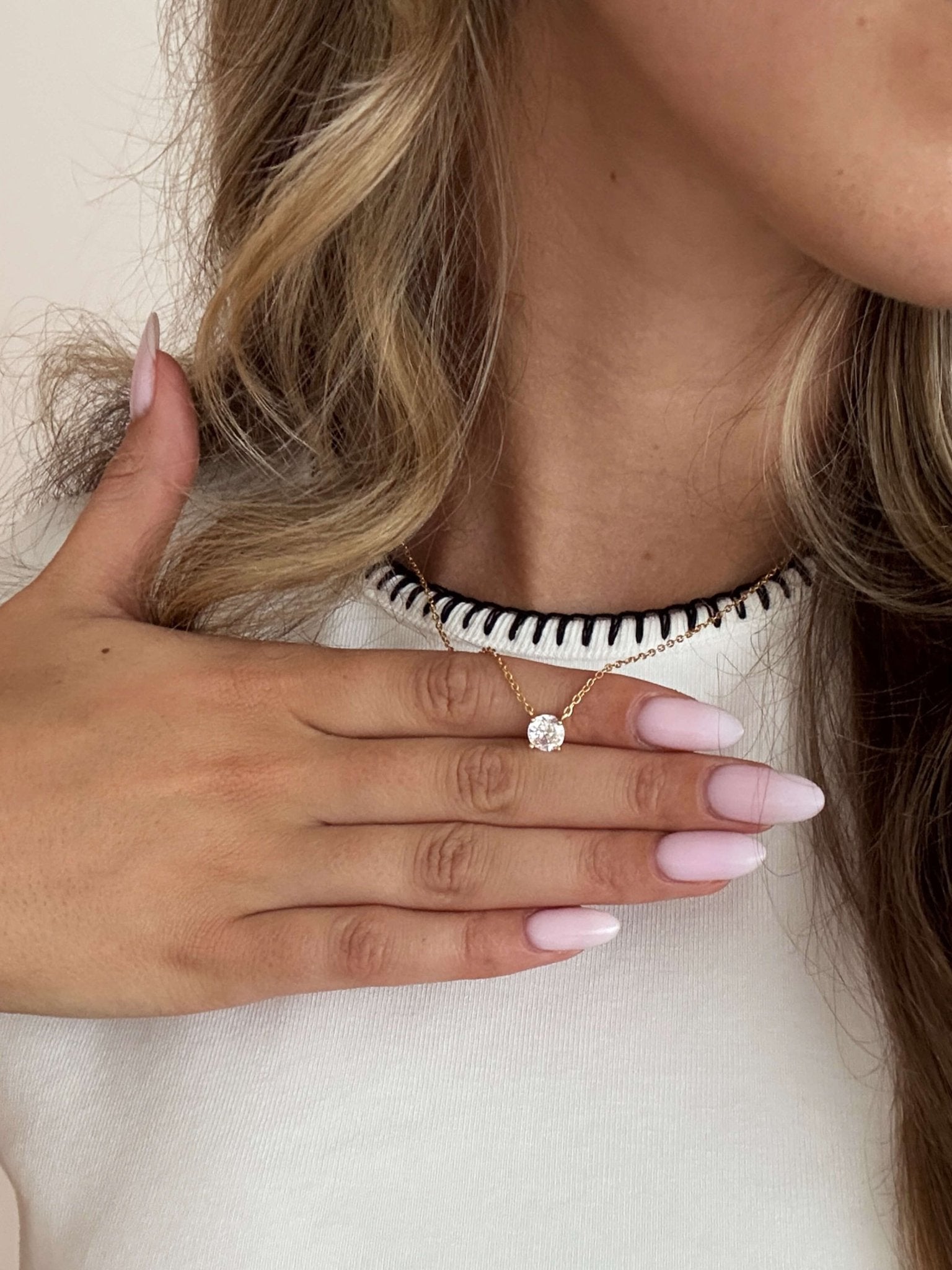 The Aralyn Necklace is the ultimate expression of timeless elegance and refined simplicity. Featuring a brilliant round-cut solitaire zirconia pendant set in a sleek four-prong setting, it captures and reflects light beautifully with every movement. Crafted from high-quality stainless steel and plated in radiant 14k gold, this piece offers lasting shine, durability, and is water- and sweat-resistant — perfect for effortless everyday wear. Its classic design makes it ideal worn solo as a subtle statement or layered with other favorites for a personalized touch. Make the Aralyn Necklace yours today and add a luminous, graceful highlight to every look.